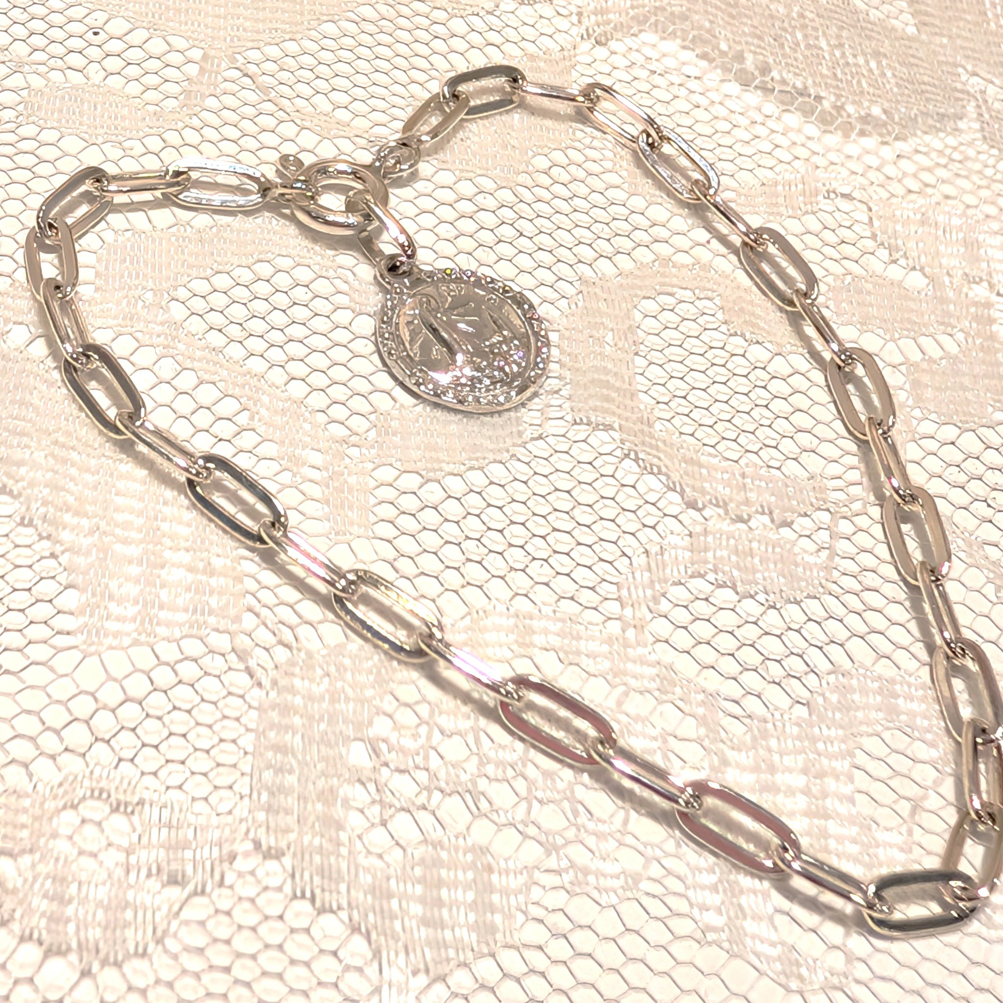 Esta cadena de plata esterlina hecha a mano representa el vínculo sagrado entre nosotros y Fátima, que no se puede romper si la fe en Dios es pura.