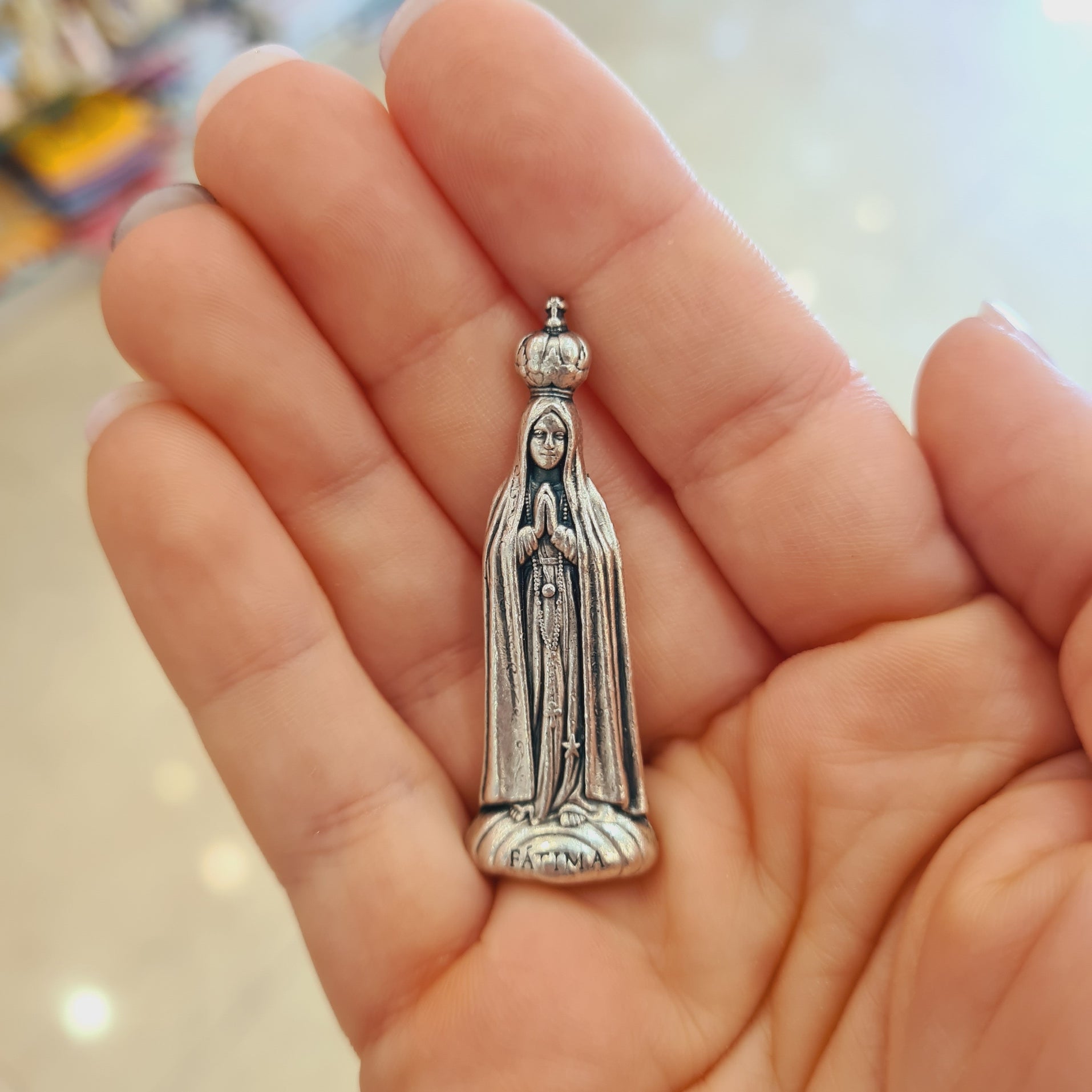 Lleve consigo la profunda devoción a Nuestra Señora de Fátima dondequiera que vaya con nuestra Virgen de Fátima de bolsillo coronada de metal. Esta exquisita estatuilla de bolsillo de metal de 4,5cm (1.8'') captura la esencia del amor y la reverencia a la Santísima Virgen María.
