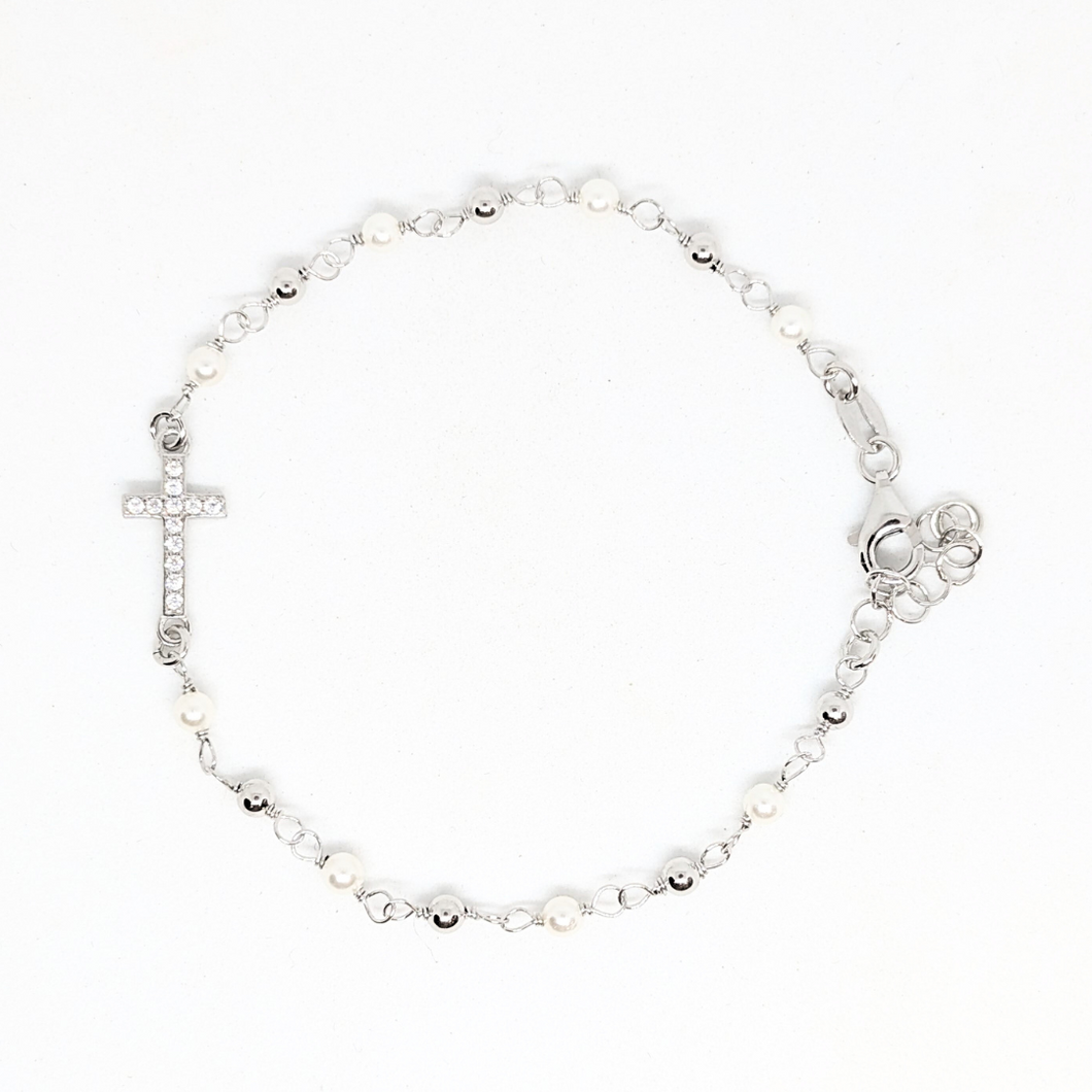 Silver Cross Bracelet with Zirconia [Sterling Silver 925]