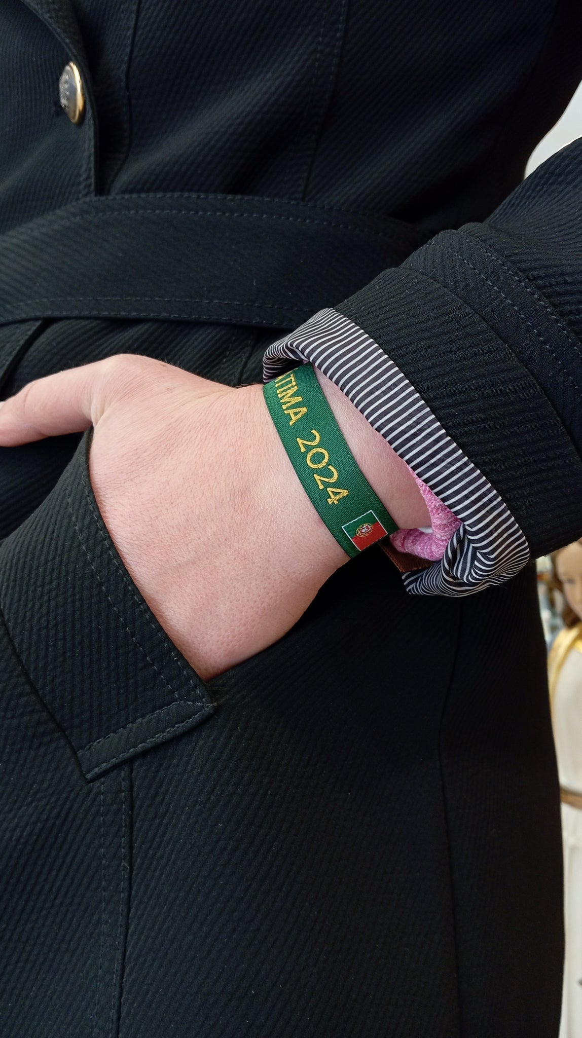 Fátima 2024 Cloth Bracelet, a unique and stylish accessory that is perfect for those who want to remember the Pope's words about gratitude and hope.