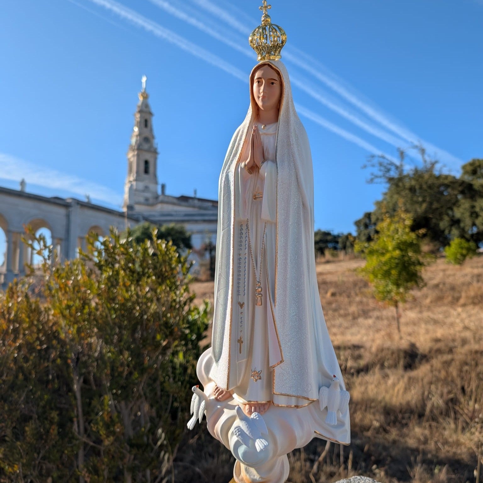 Our Lady of Fatima, the Blessed Virgin Mary, is known for Her apparitions in 1917 to three shepherd children at Cova da Iria, in Fatima, Portugal.