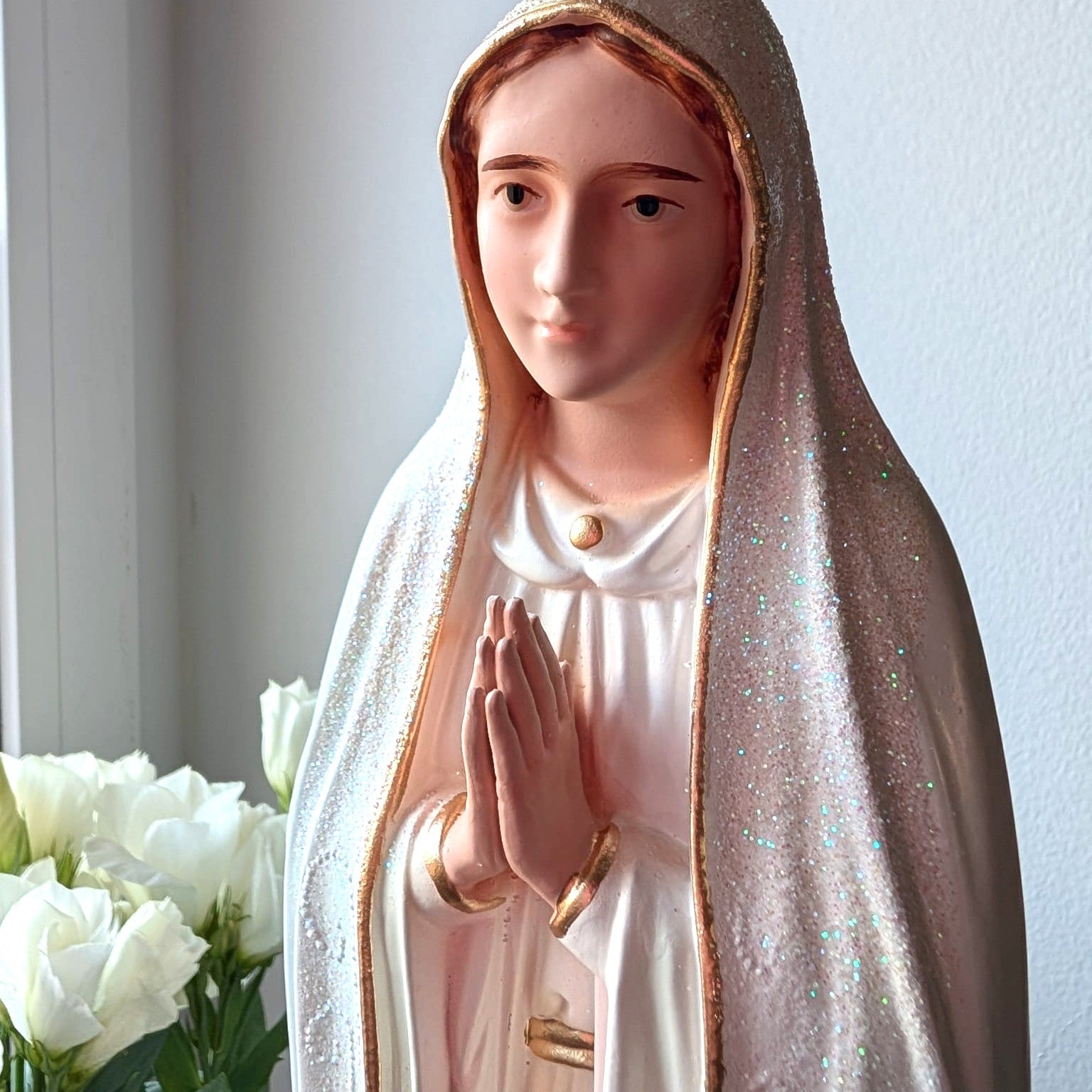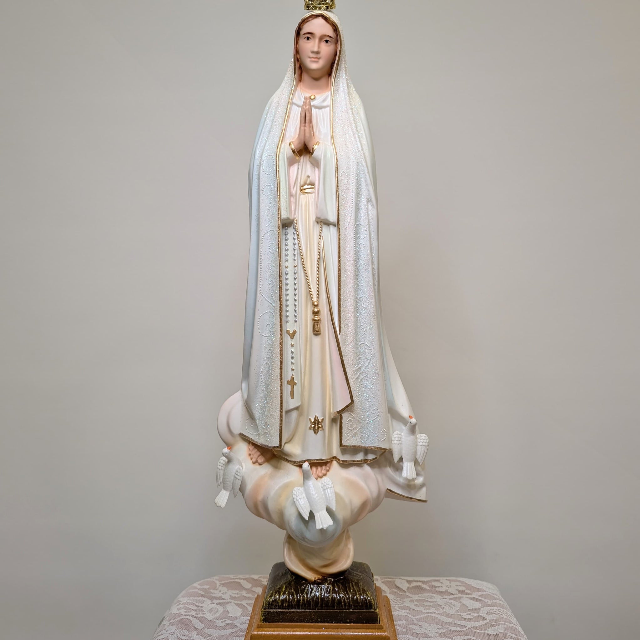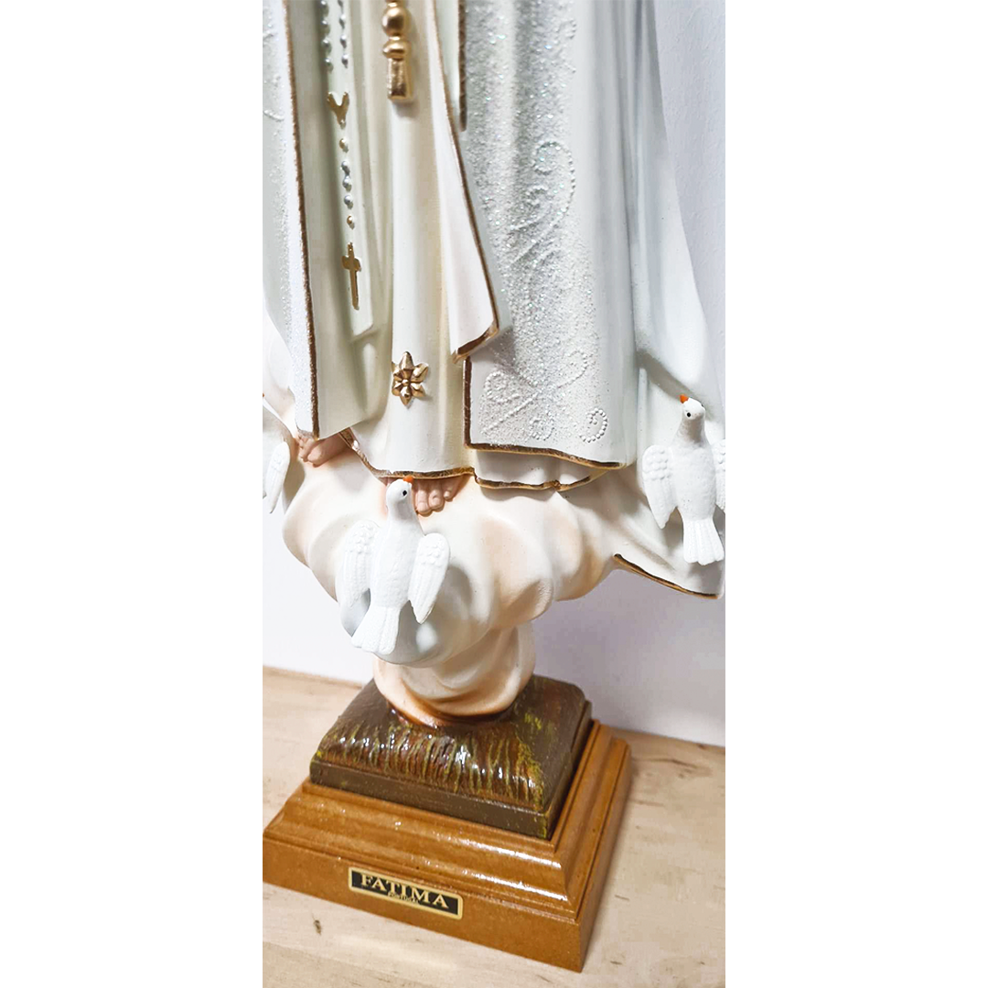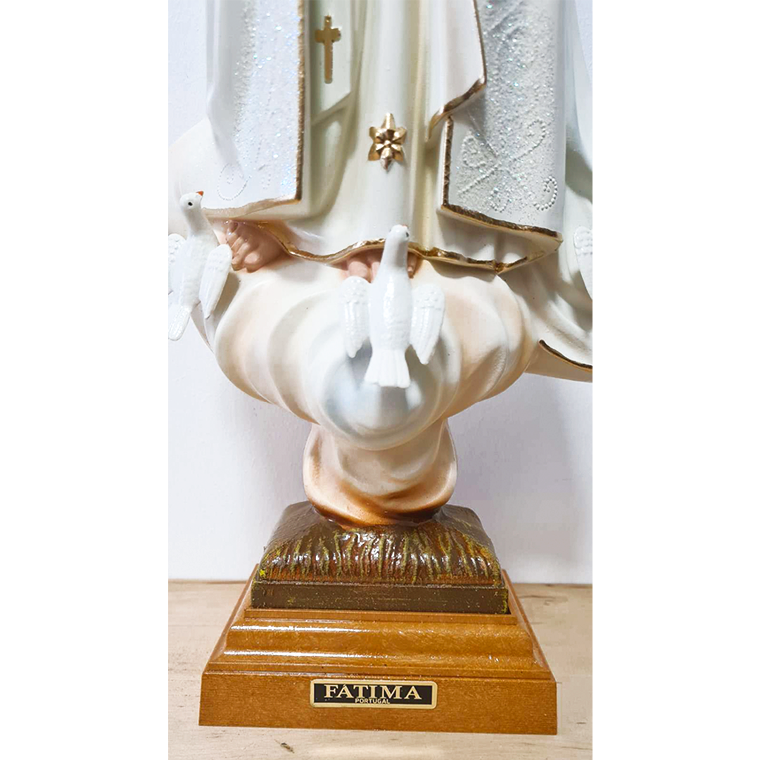 The statue is handmade and painted in Fatima, Portugal, and blessed by the local priest before we send it to you.