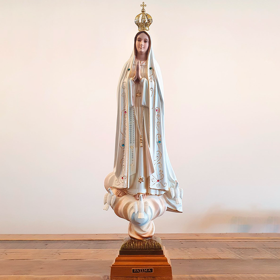 The statues are handmade and painted in Fatima, Portugal, and blessed by the local priest before we send it to you.