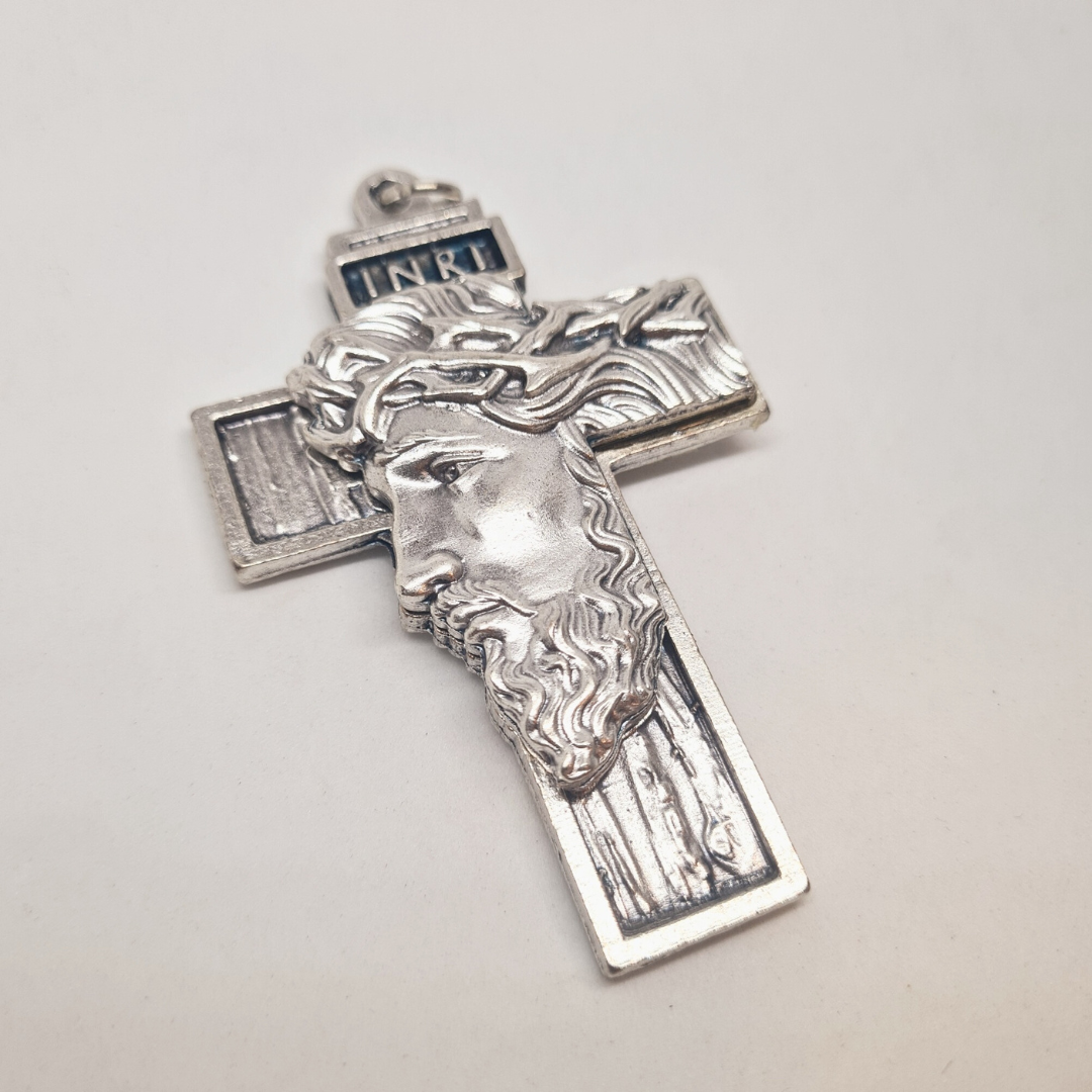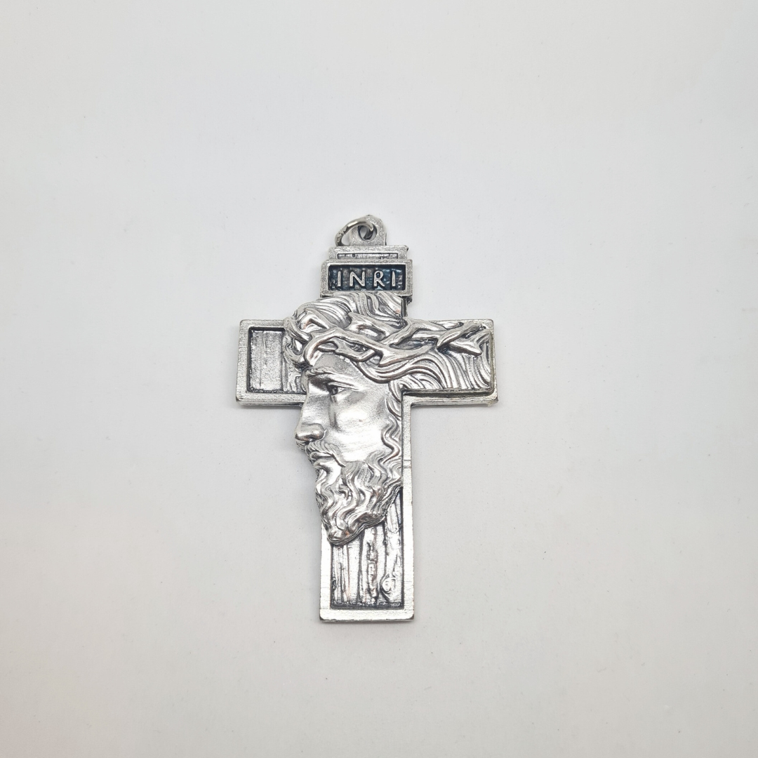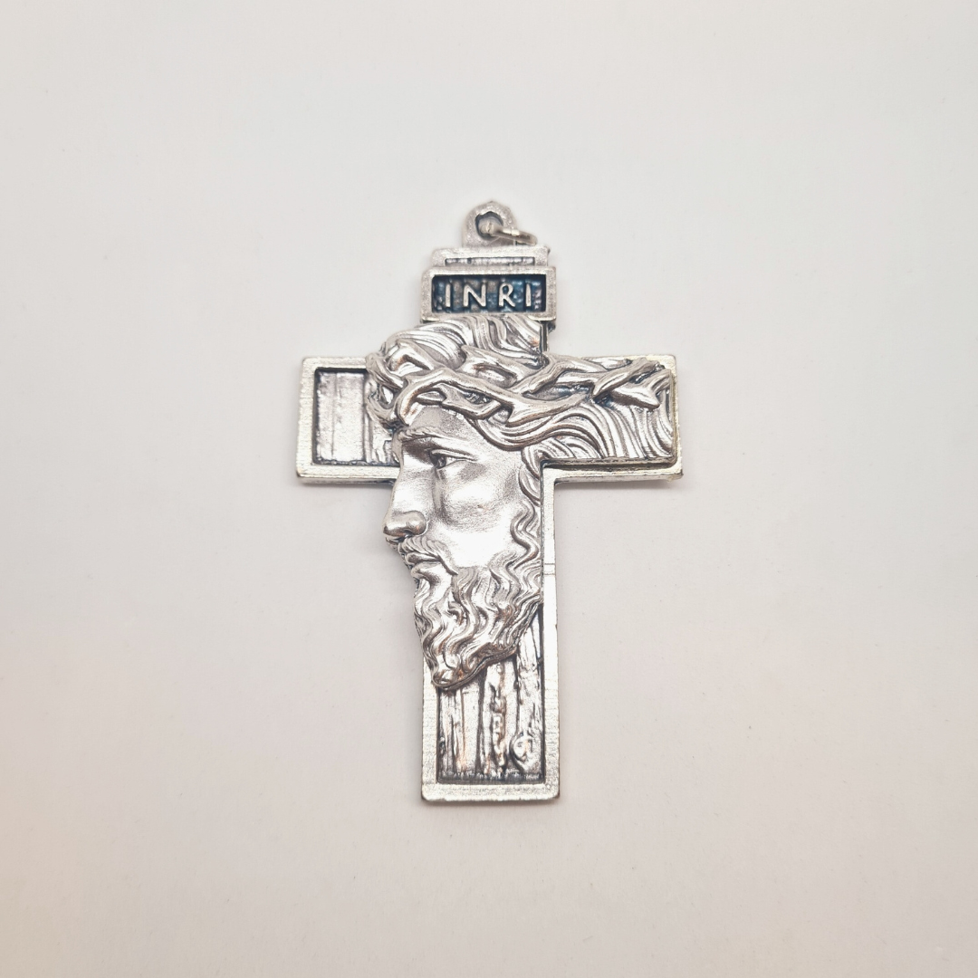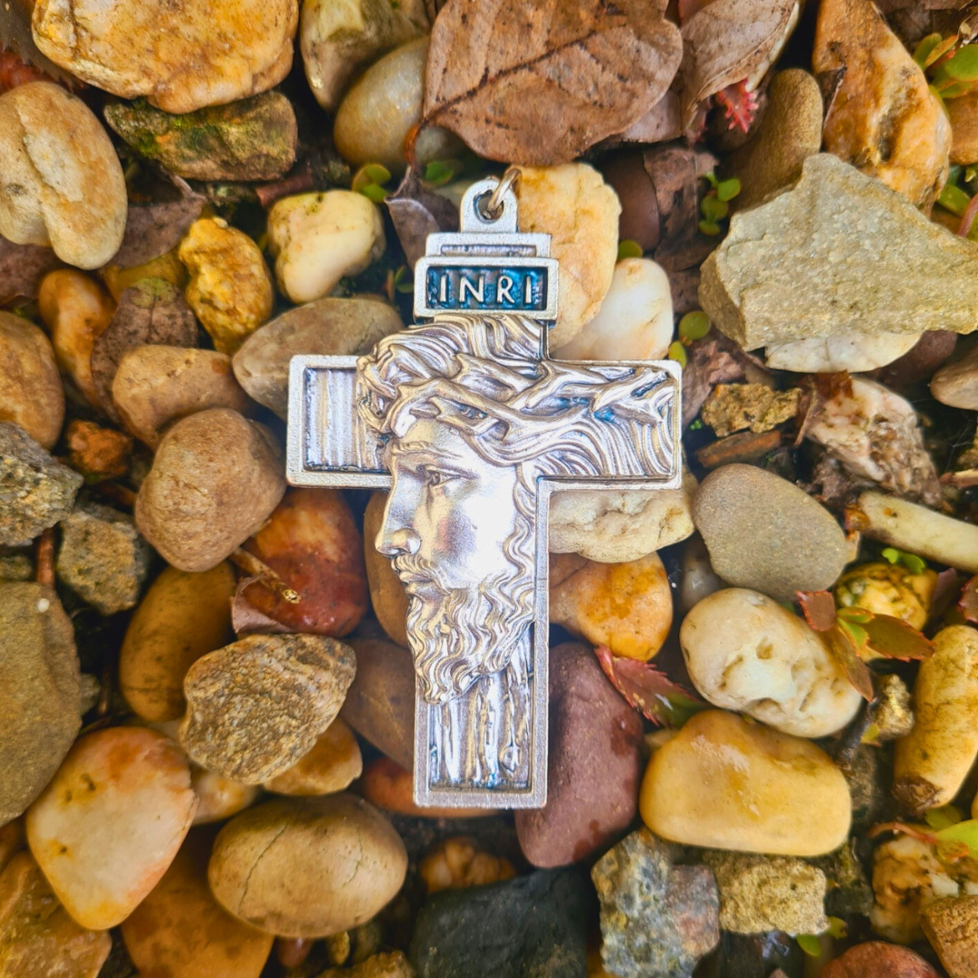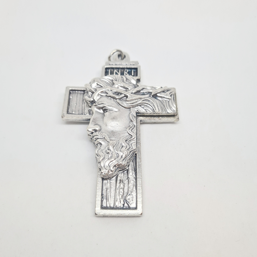Holy Face Cross [Silver], a Symbol of Faith and Strength.