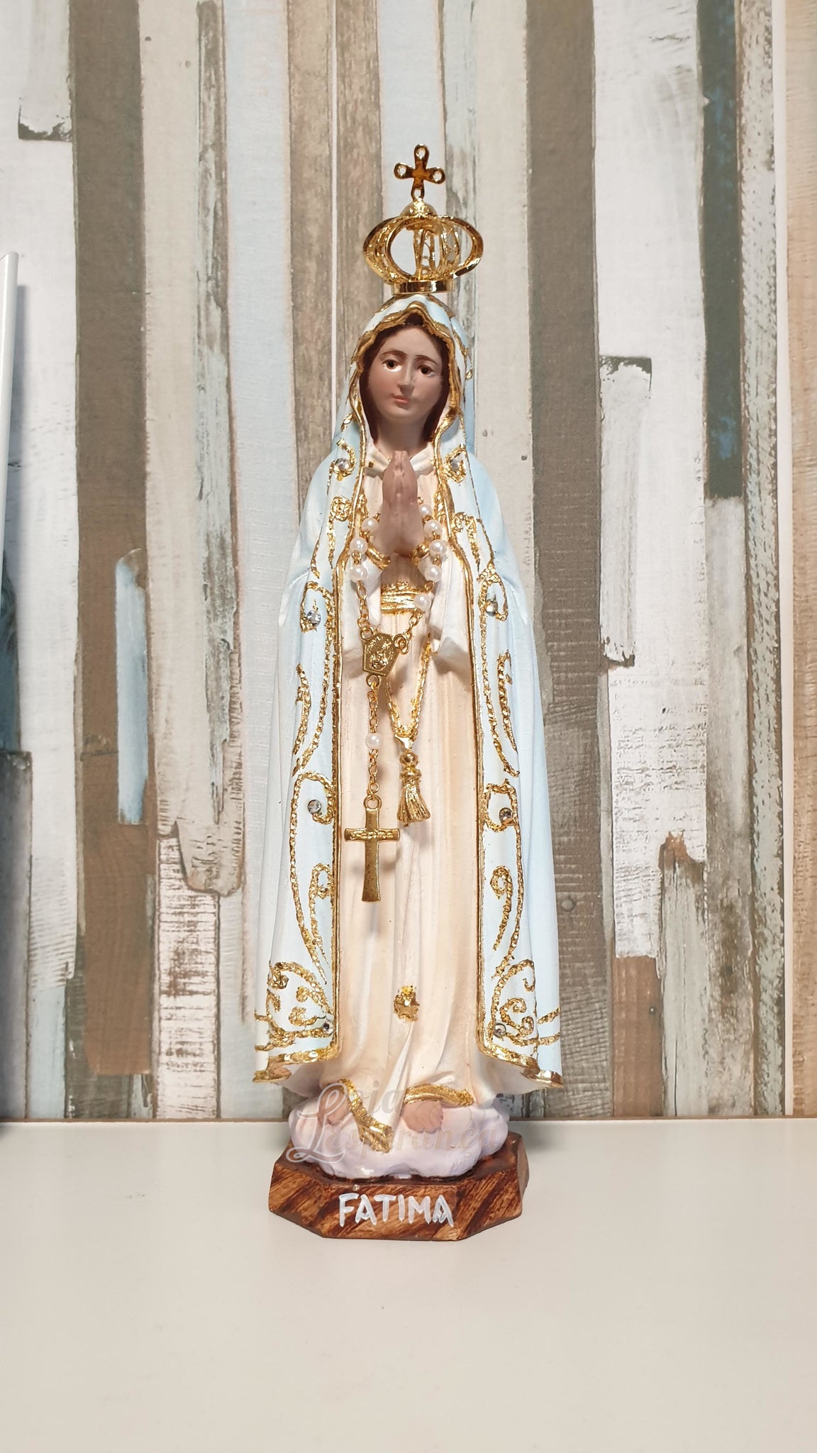 🎨 100% Hand Painted: Every stroke of paint is lovingly applied by hand, capturing the grace and serenity of Our Lady of Fatima. The intricate gold details highlight the holiness and significance of this Marian devotion.