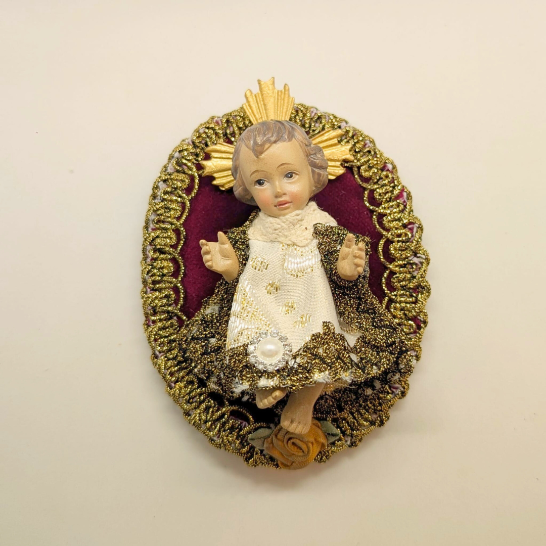 Experience the breathtaking beauty of our Magnificent Dressed Baby Jesus with Pillow [Premium] - 3.94'' | 10cm.