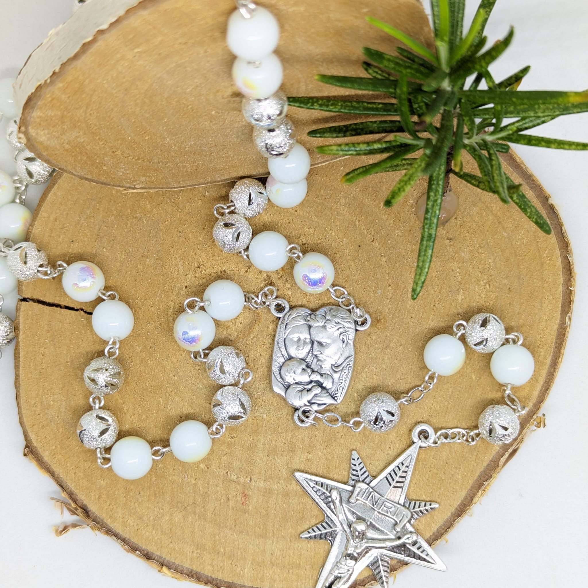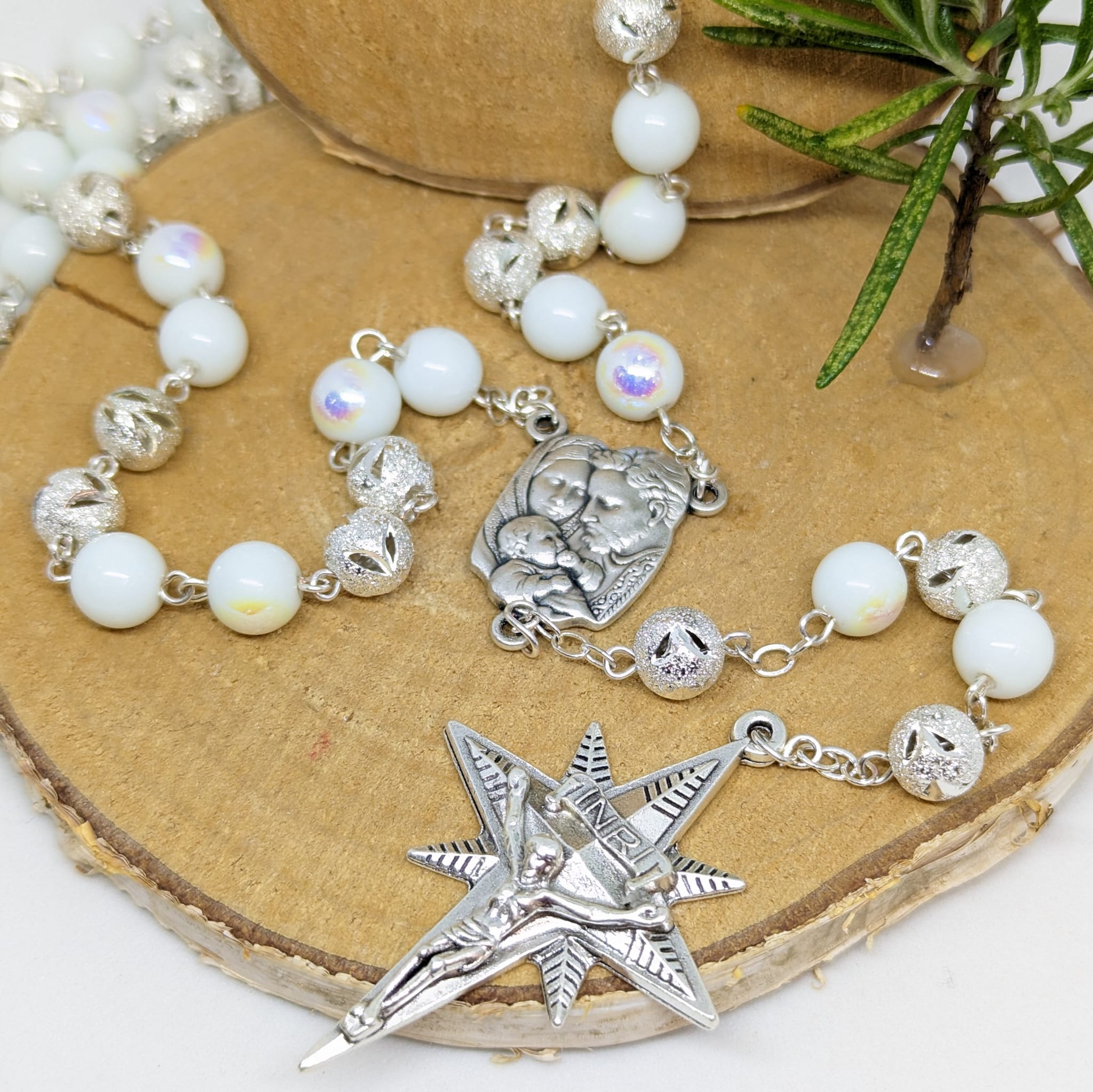 Christmas Rosary - Silver Holy Family