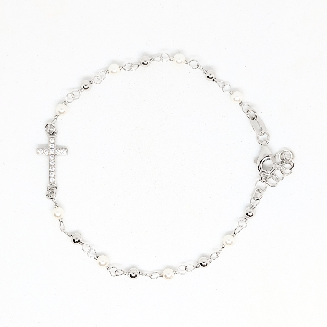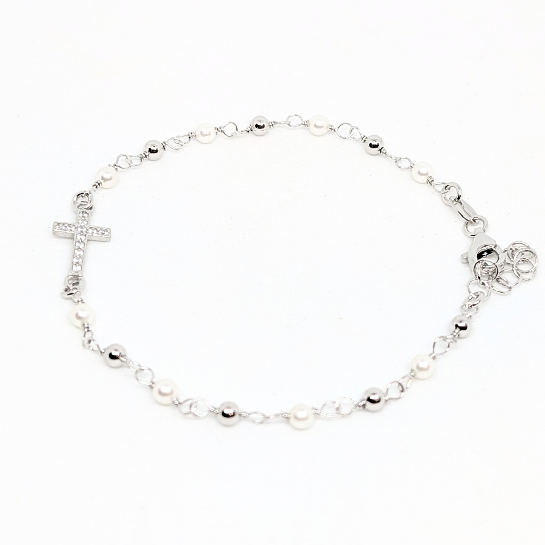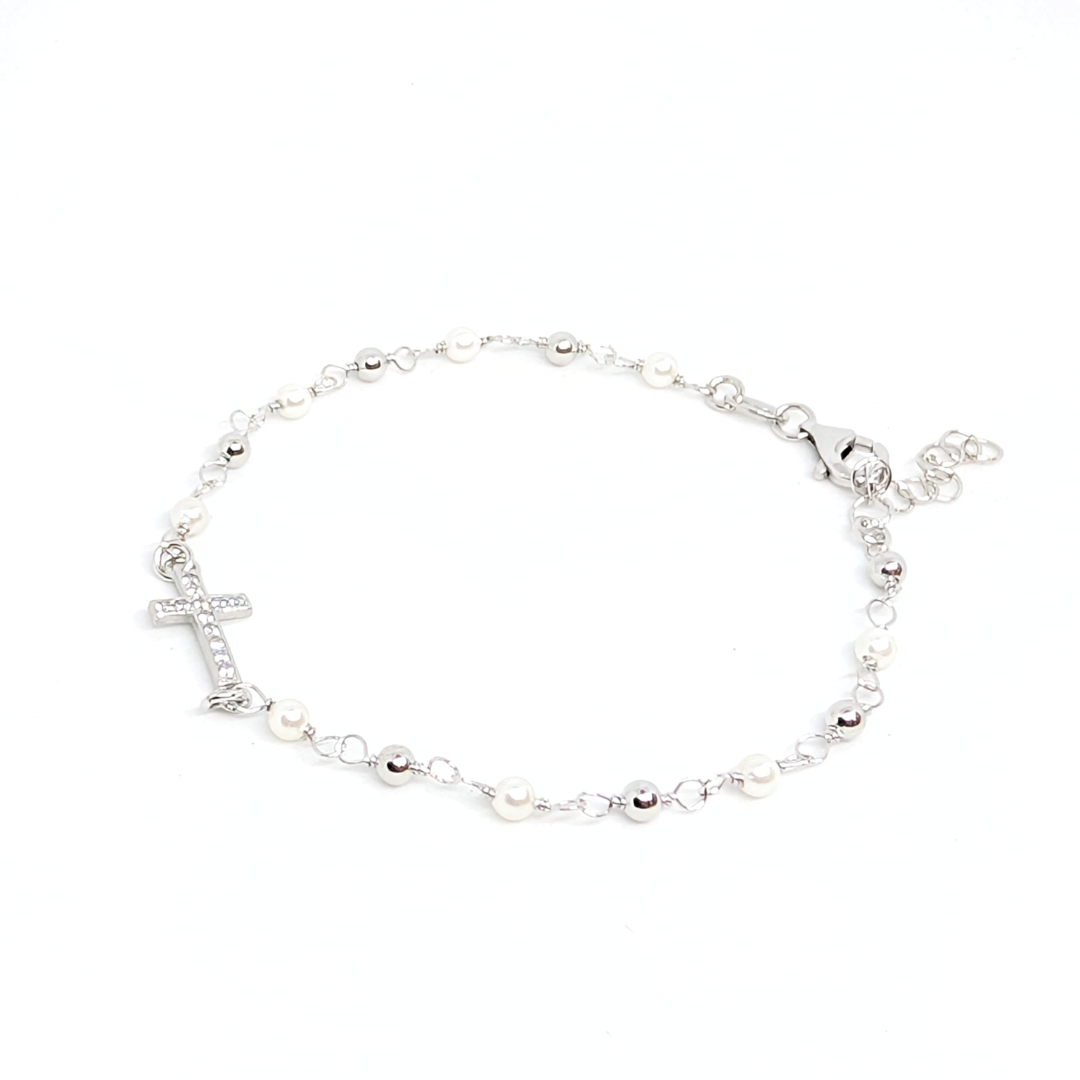 Silver Cross Bracelet with Zirconia [Sterling Silver 925]