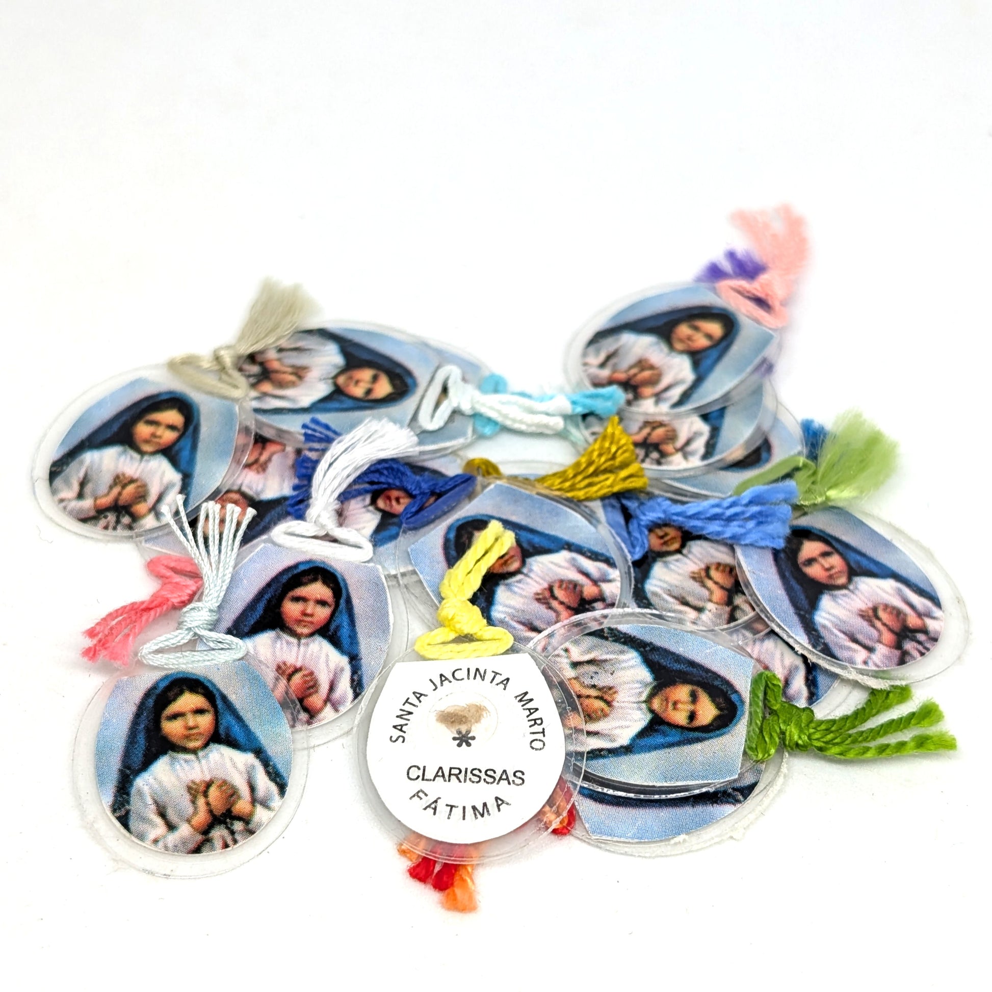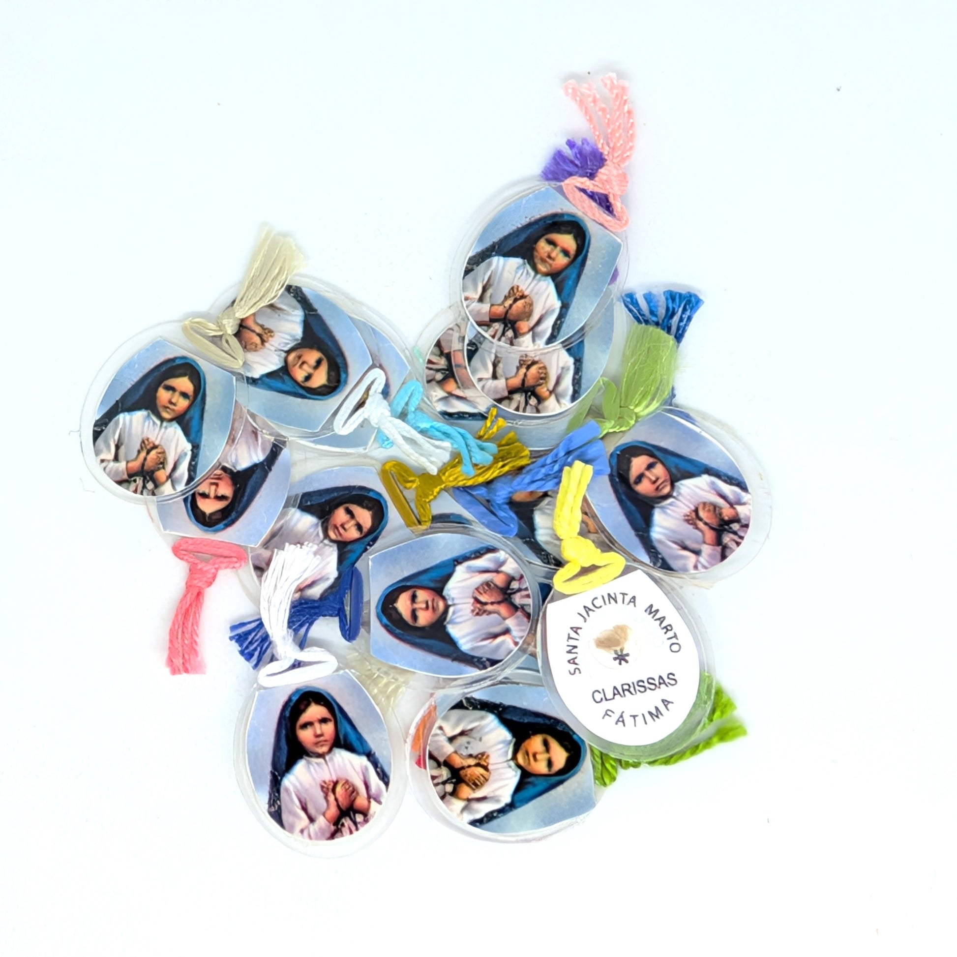 Esta reliquia es un hermoso recordatorio de la fe de San Jacinta y de los milagrosos eventos de 1917 que transformaron la vida de millones. El relicario está decorado con una imagen de San Jacinta en el centro, rodeado de una red artesanal de color rojo y azul. Cada pieza es única, elaborada con amor y devoción.